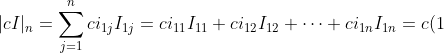 I_{11}+c(0)I_{12}+\cdots+c(0)I_{1n}=cI_{11}=c\vert cI\vert_{n-1}=cc^{n-1}=c^n)