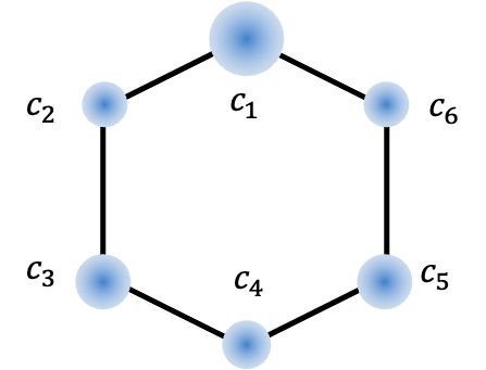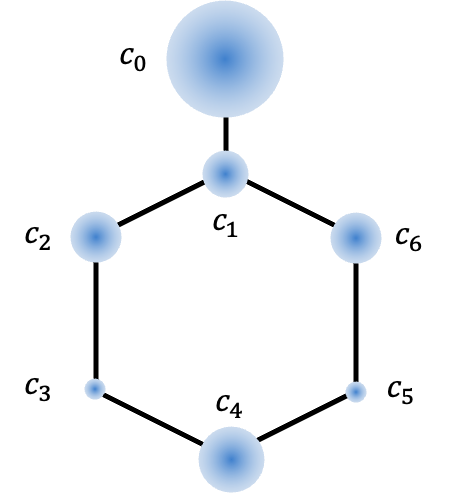 As the nitrogen atom lacks a lone pair of electrons to interact with the benzene π-system, the substituted carbon atom is treated as being perturbed by the electron-withdrawing group, leading to the following secular determinant: