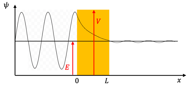 is depicted as a standing wave for simplicity. When the transmission probability is small,