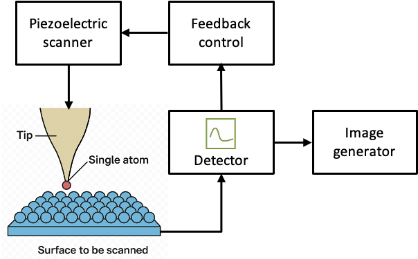 A typical STM system comprises several key components: a sharp metallic tip, a piezoelectric scanner, a feedback control system, and associated electronics for current detection and image acquisition (see diagram below). Each plays a crucial role in achieving atomic-scale precision.