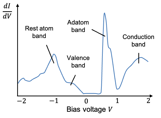 Thus, the STS spectrum (see diagram below) provides direct insight into the nature of the surface atoms and their electronic states, and it serves as an important tool for validating theoretical surface reconstruction models.