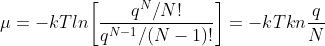 Substituting eq167 into eq159e gives the expression for the chemical potential of an ideal gas: